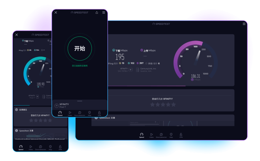 您平时会使用各种设备连接到互联网。但您对网速满意吗?利用免费的本地应用,测试每台设备上的宽带、蜂窝网络或 Wi-Fi 连接速度。